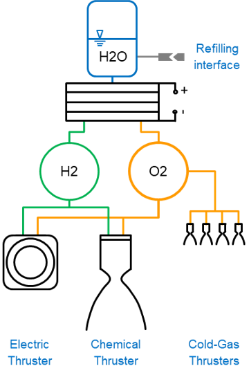 Water Electrolysis Propulsion is one of our main focuses here at the Chair of Space Mobility and Propulsion within the Technical University of Munich. Water electrolysis propulsion makes use of an electrolyser, powered by the energy onboard provided by solar panels, to decompose water into hydrogen and oxygen for combustion in a thruster. While the technology for water electrolysis has been around since the 19th century only very recently has this become of interest for space propulsion applications. Clear advantages are that water is environmentally friendly, extremely storable, and that hydrogen-oxygen combustion provides performances beyond those achievable with propellants currently used for satellite propulsions.